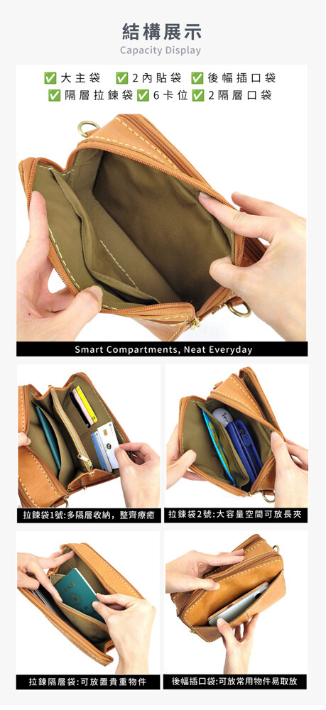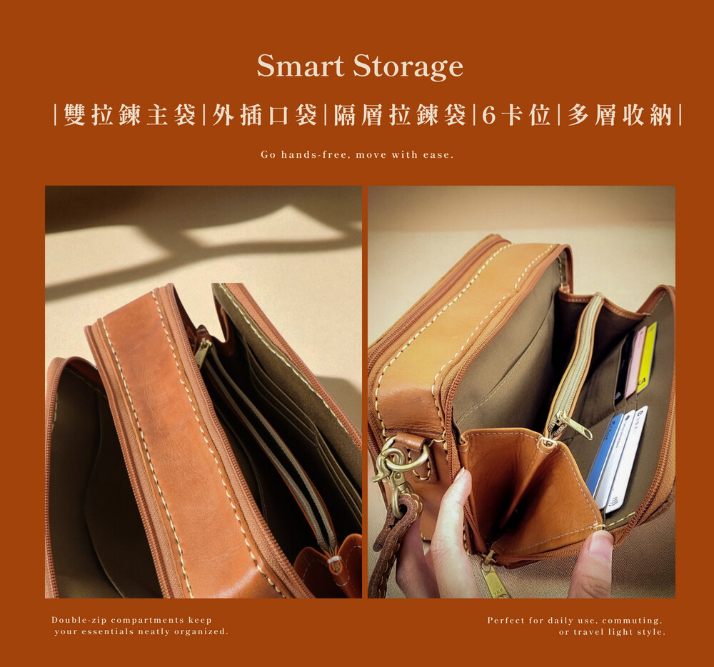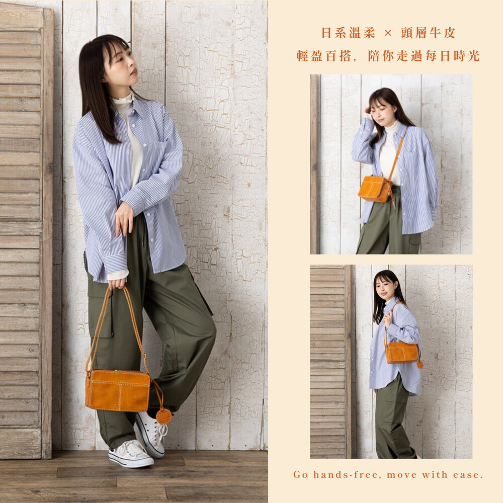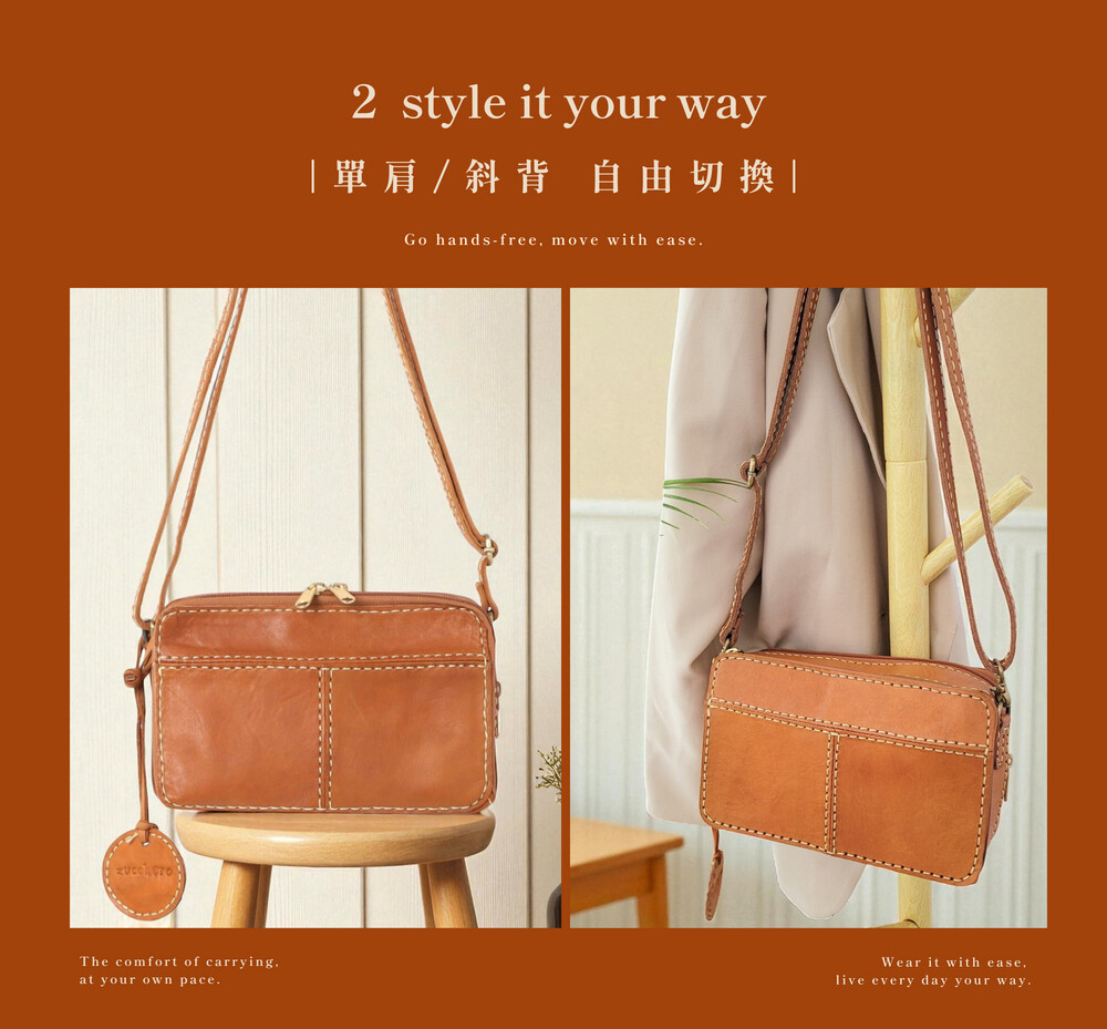 【喜番屋】日貨-真皮頭層牛皮女士雙拉鍊肩背包斜背包女包-Zucchero【LB1188】