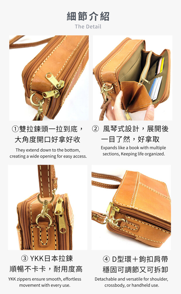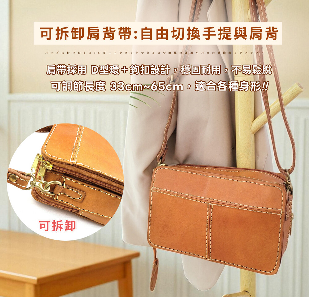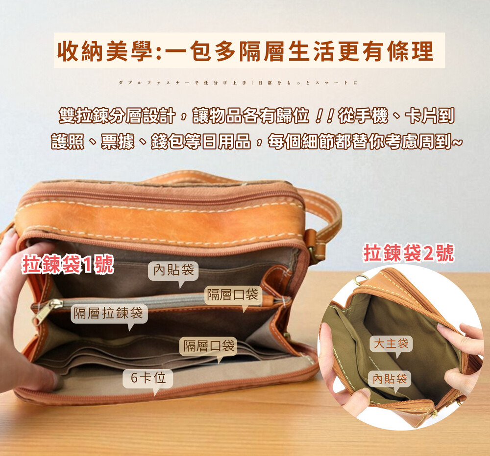 商品名稱:【喜番屋】日貨-真皮頭層牛皮女士雙拉鍊肩背包斜背包女包-Zucchero【LB1188】