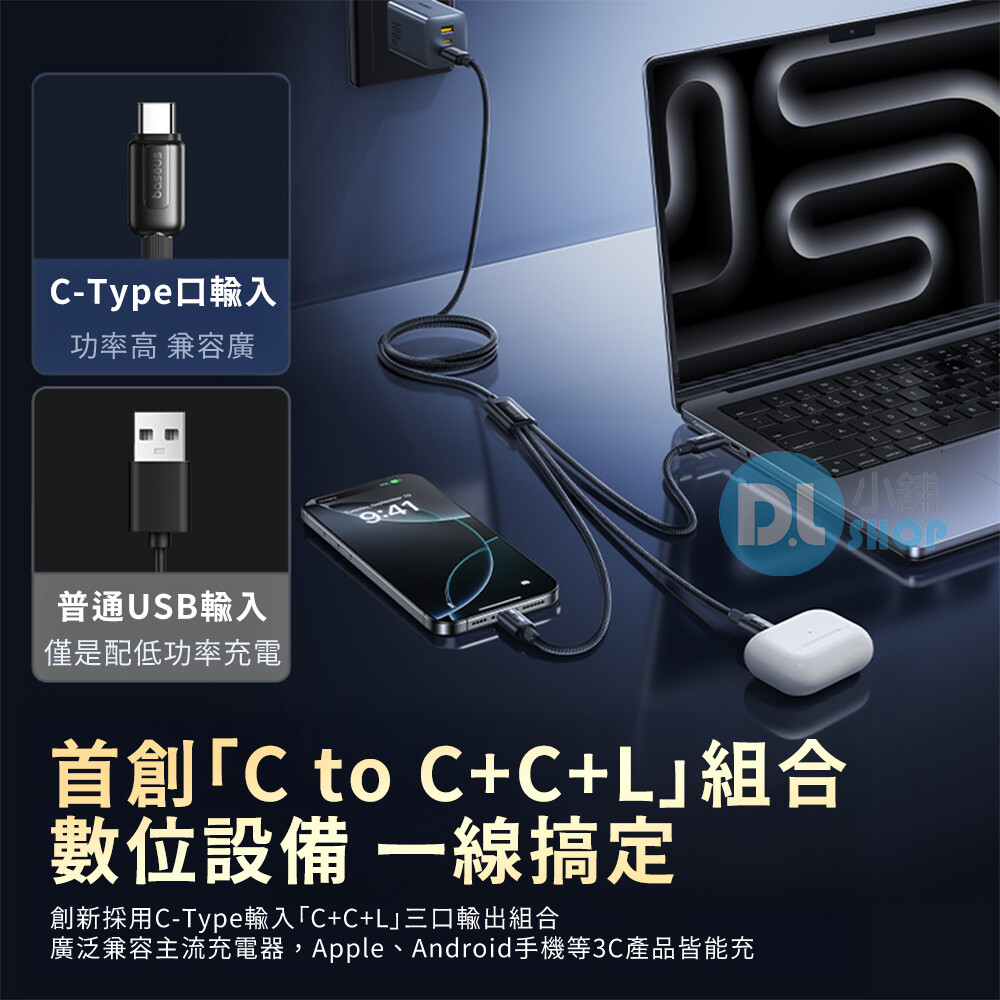 ✅創新採用Type-c輸入「C+C+L」三口輸出組合,數位設備,一線搞定。