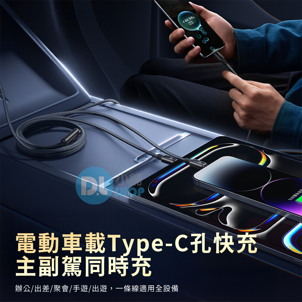 ✅車用Type-c孔快充,主副駕同時充,一條線使用全設備。
