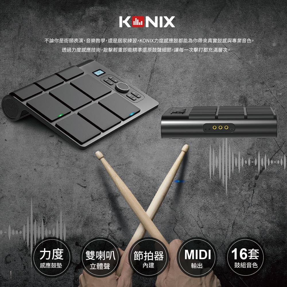 KONIX科尼斯樂器,力度感應鼓,