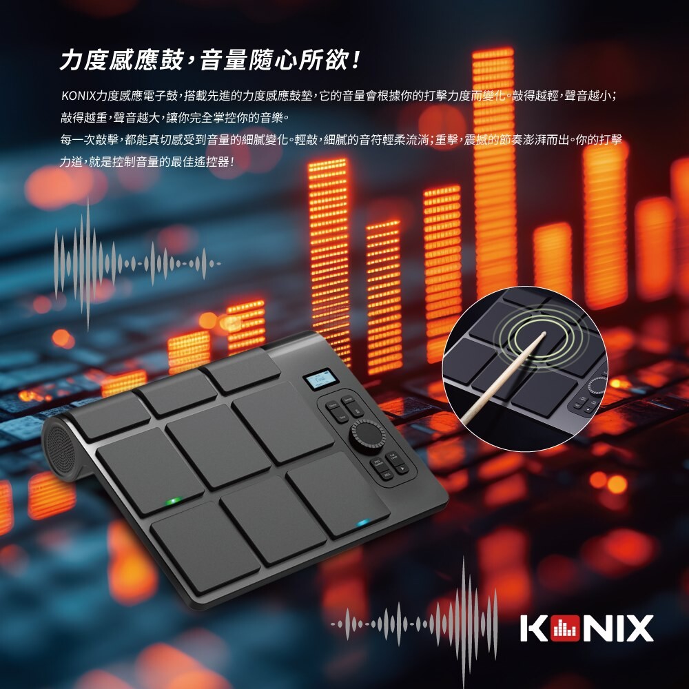 KONIX科尼斯樂器,力度感應電子鼓,產品介紹