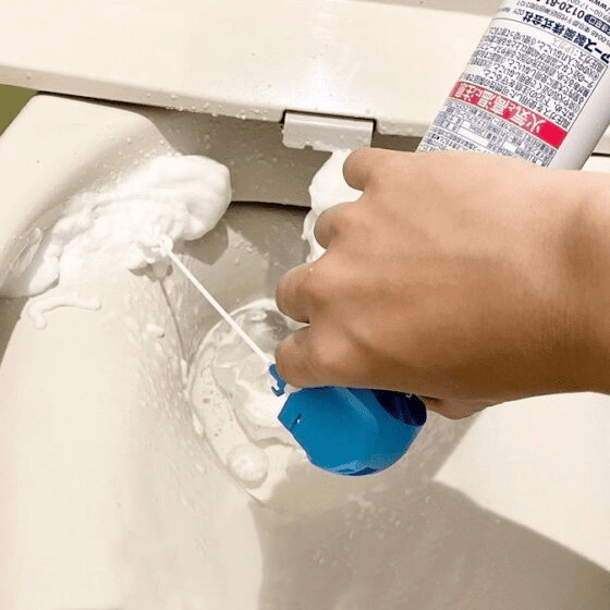 直接將泡沫噴霧對準馬桶內壁或排水孔。