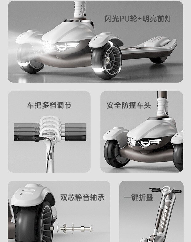 踏板溜溜車 滑板車 手刹款 兒童6到12歲 折疊 男女童 加強防撞車頭 滑行更安全z
