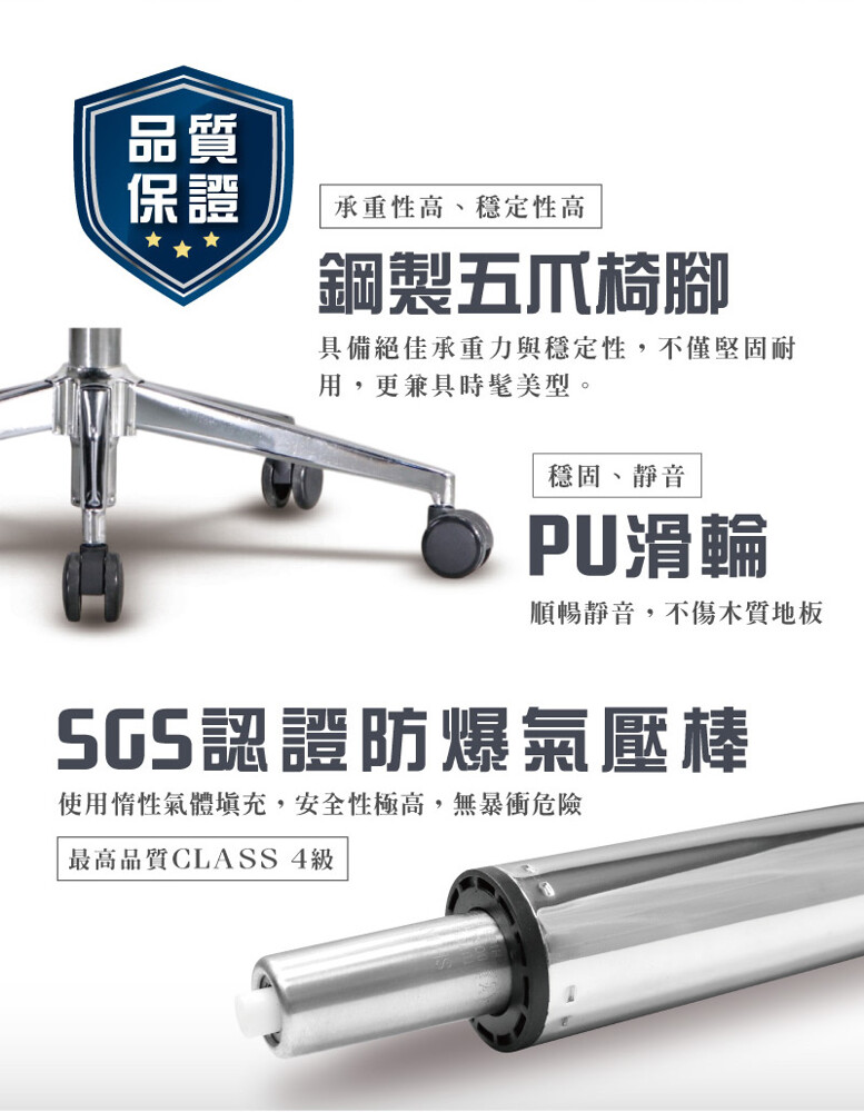 SGS認證,安全性極高,無暴衝危險,升降滑順穩定,安全耐用不易損壞。