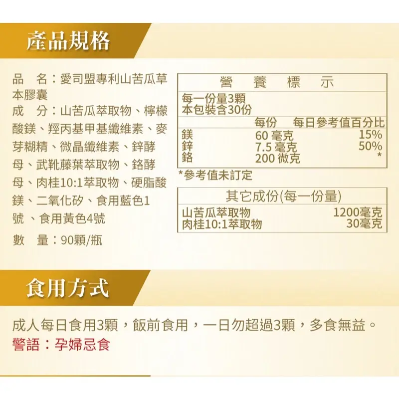 產品全名: 愛司盟-專利山苦瓜草本膠囊(純素)