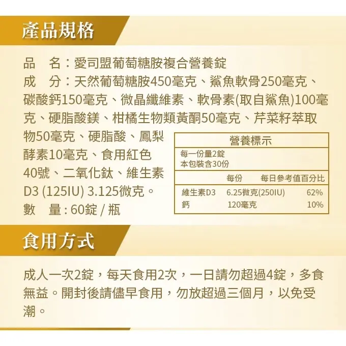 產品全名: 愛司盟葡萄糖胺複合營養錠