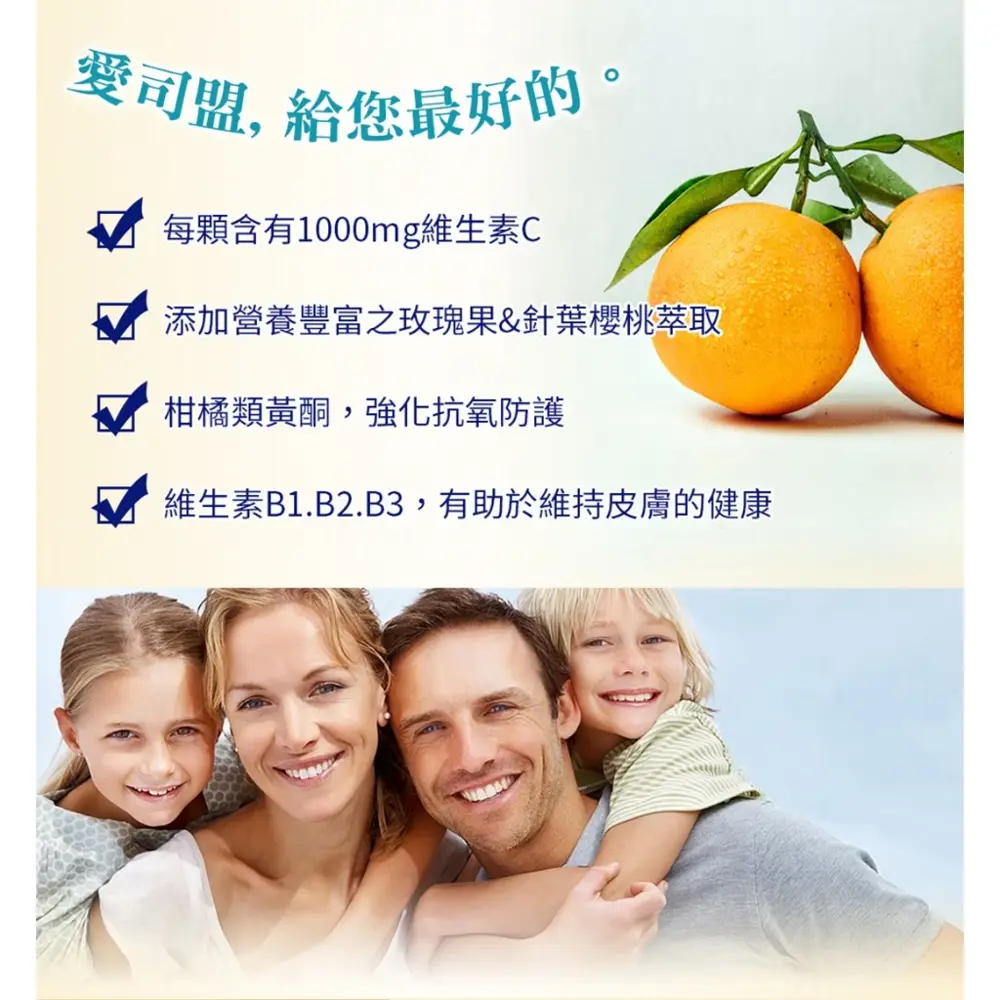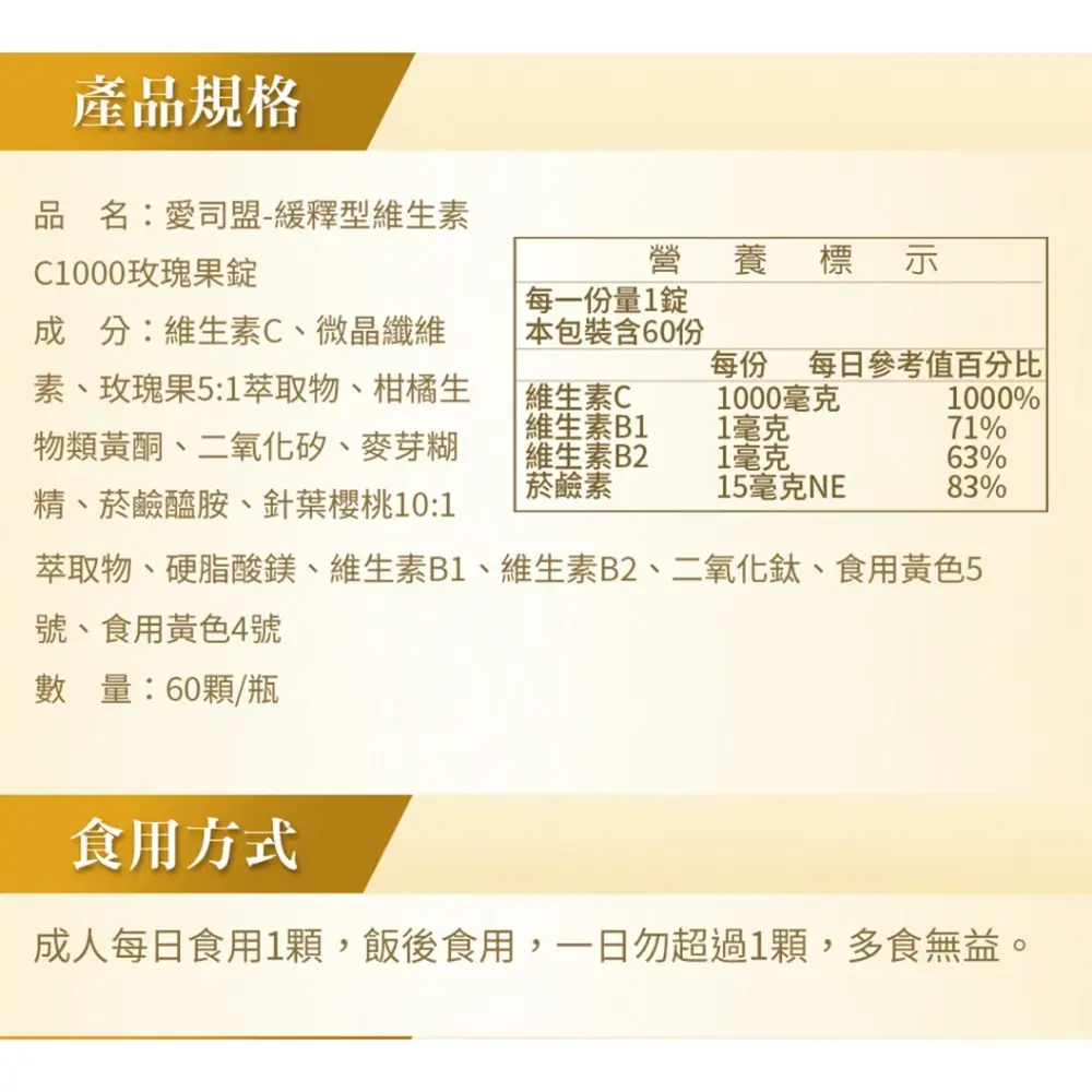 產品全名: 愛司盟-緩釋型維生素C1000玫瑰果錠 (純素)