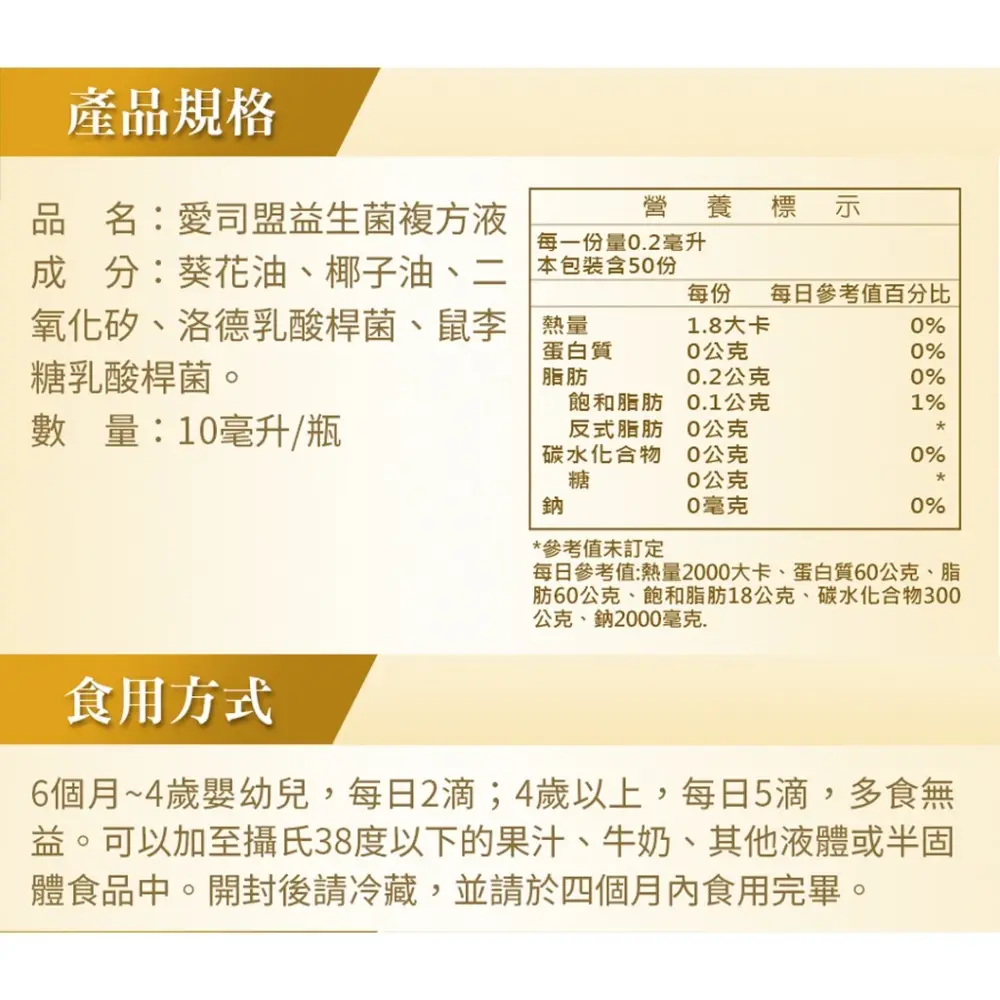成份:葵花油,椰子油,二氧化矽,洛德乳酸桿菌,鼠李糖乳酸桿菌。
