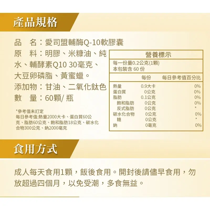 產品全名:愛司盟輔酶Q-10軟膠囊