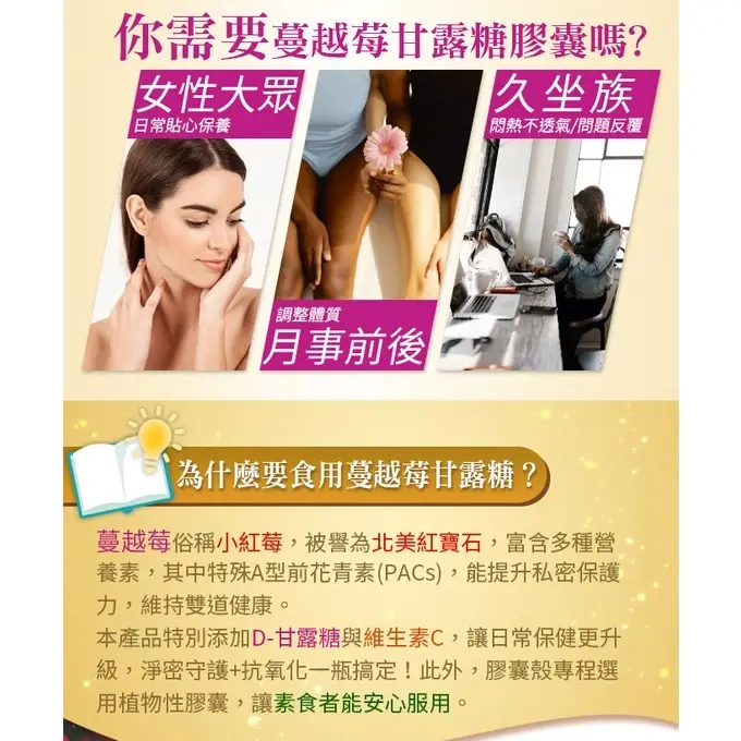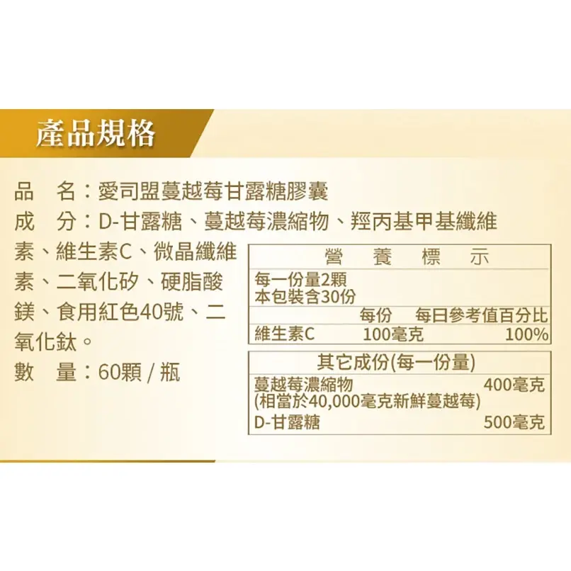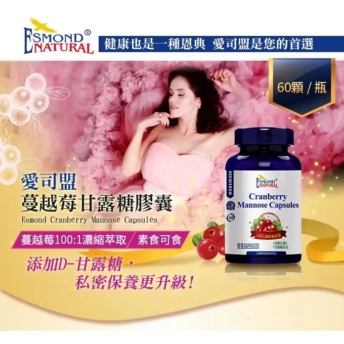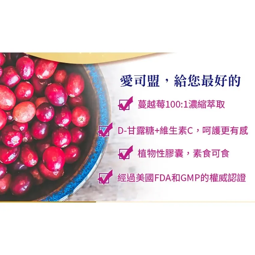 產品全名: 愛司盟-蔓越莓甘露糖膠囊(純素)