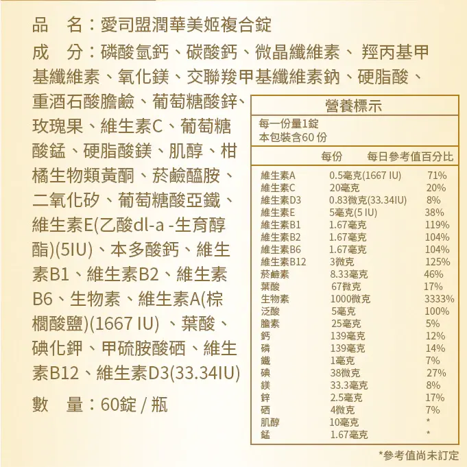 產品全名: 愛司盟潤華美姬複合錠