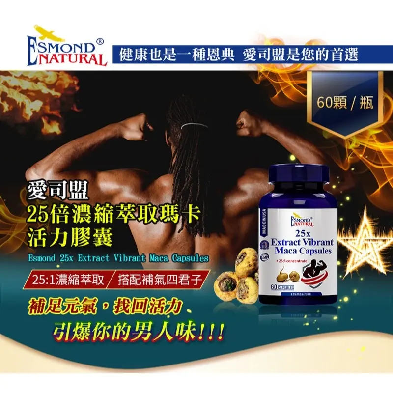 英文名稱:Esmond 25x Extract Vibrant Maca Capsules