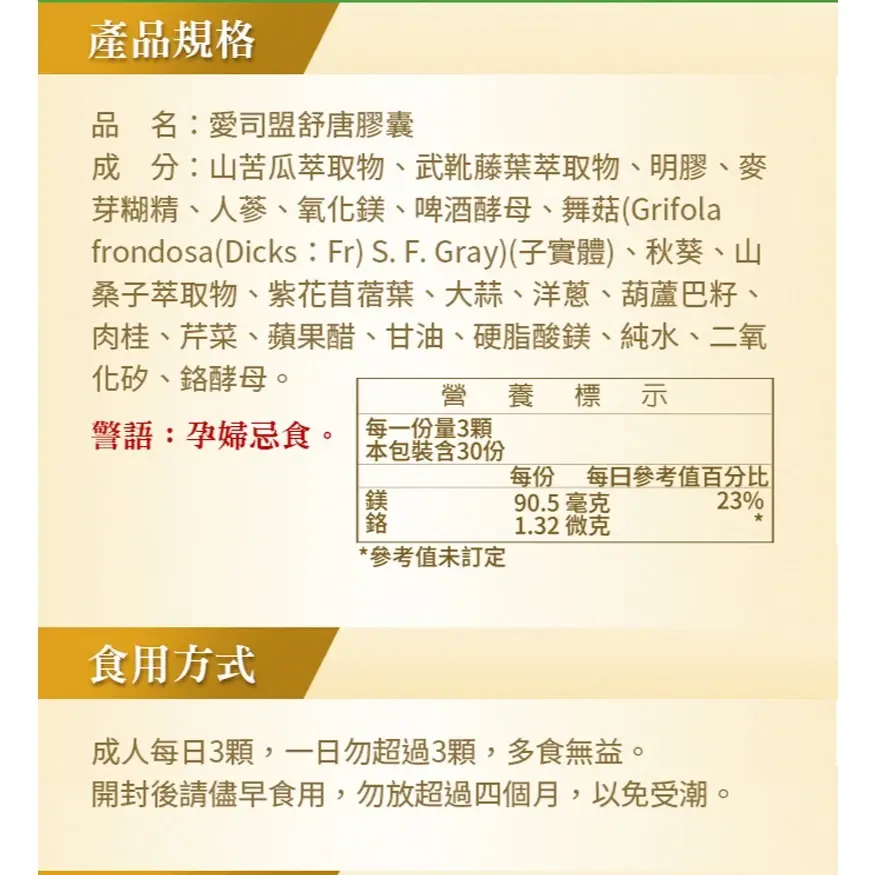 產品全名: 愛司盟-舒唐膠囊