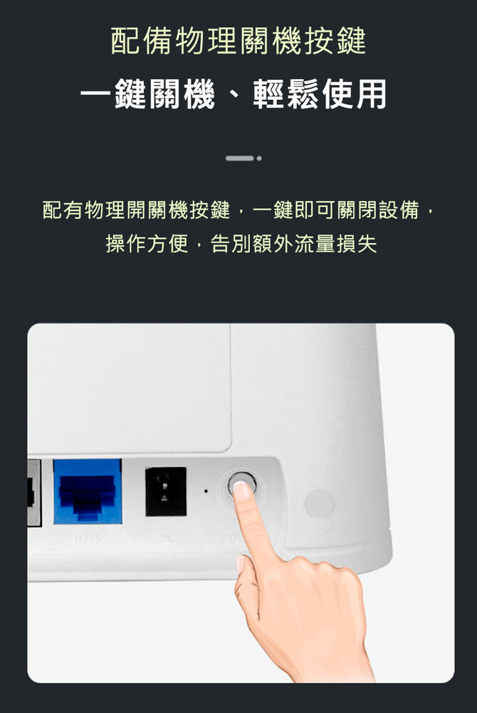 配有物理開關機按鍵,一鍵即可關閉設備,操作方便,告別額外流量損失