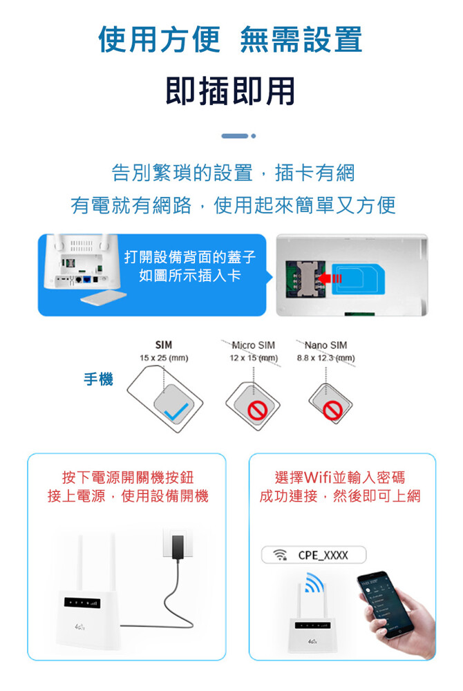 告別繁瑣的設置,插卡有網,有電就有網路,使用起來簡單又方便