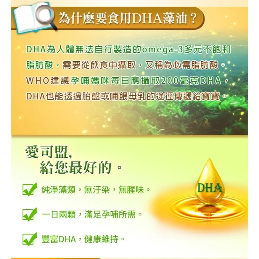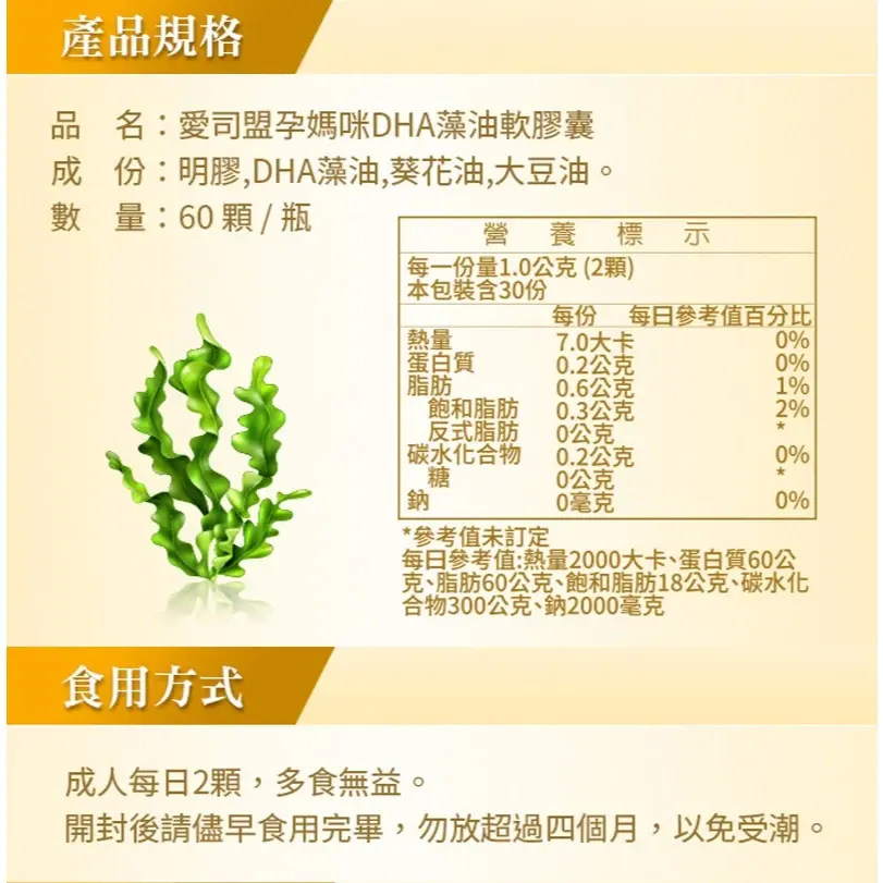 產品全名: 愛司盟-孕媽咪DHA藻油軟膠囊