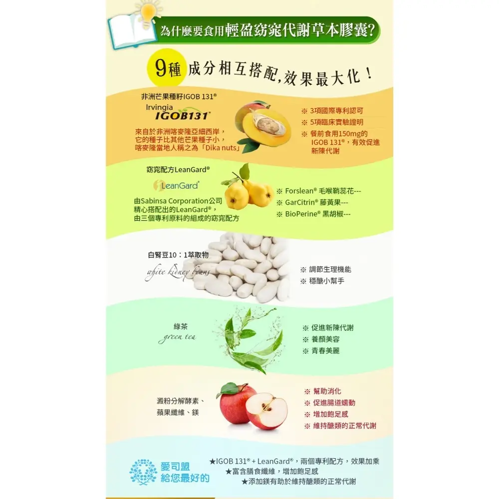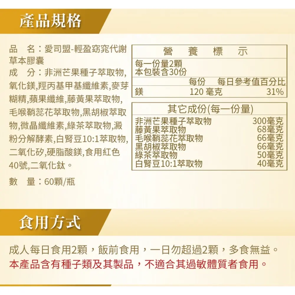 產品全名: 愛司盟-輕盈窈窕代謝草本膠囊(純素)