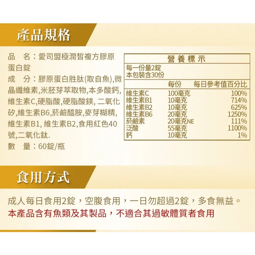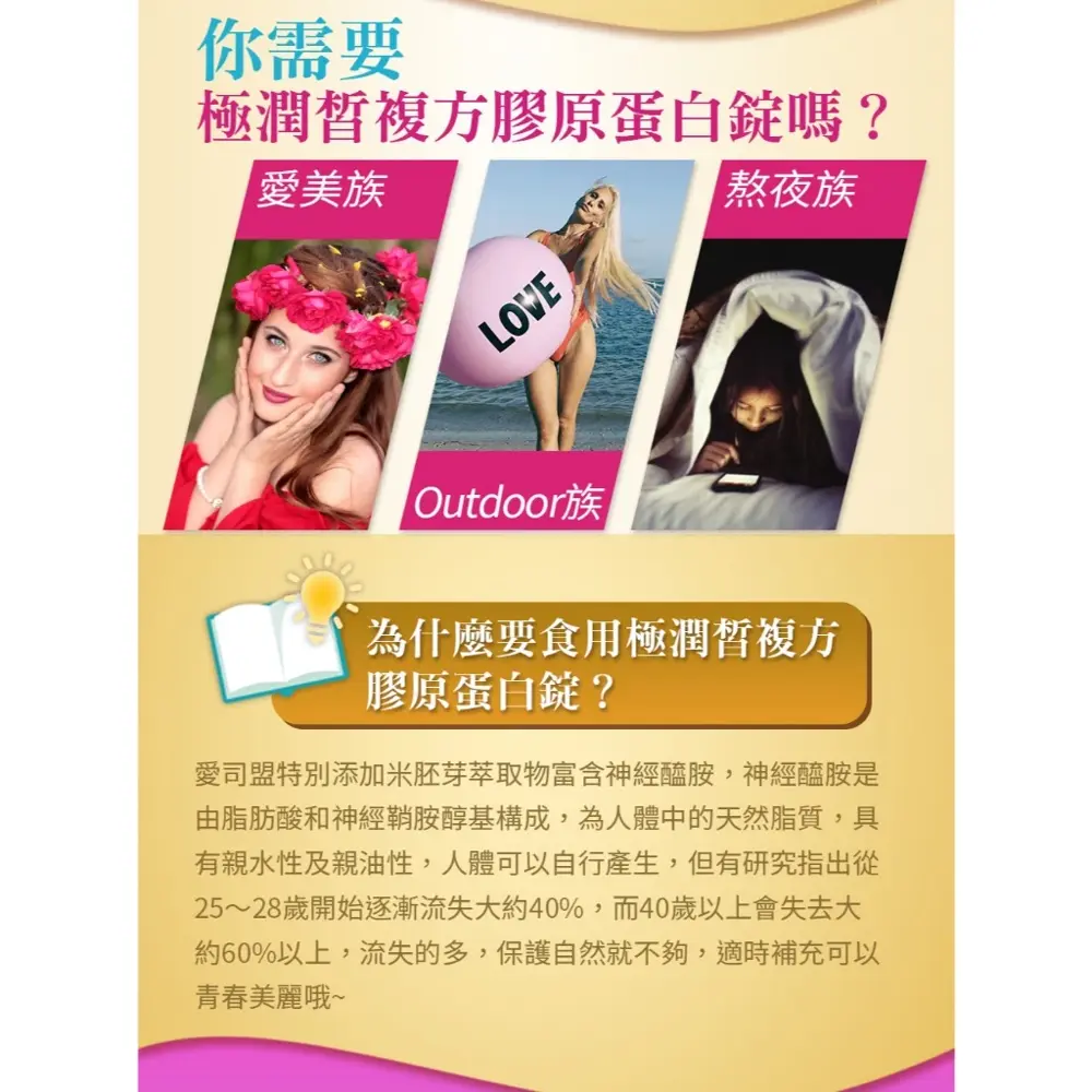 產品全名: 愛司盟-極潤皙複方膠原蛋白錠