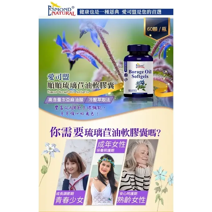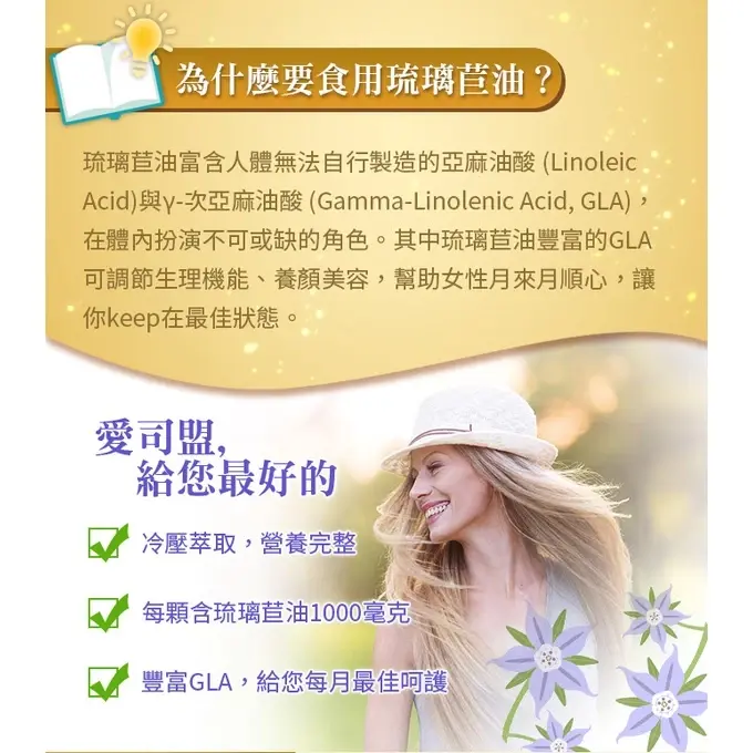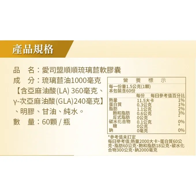 產品全名:愛司盟順順琉璃苣油軟膠囊