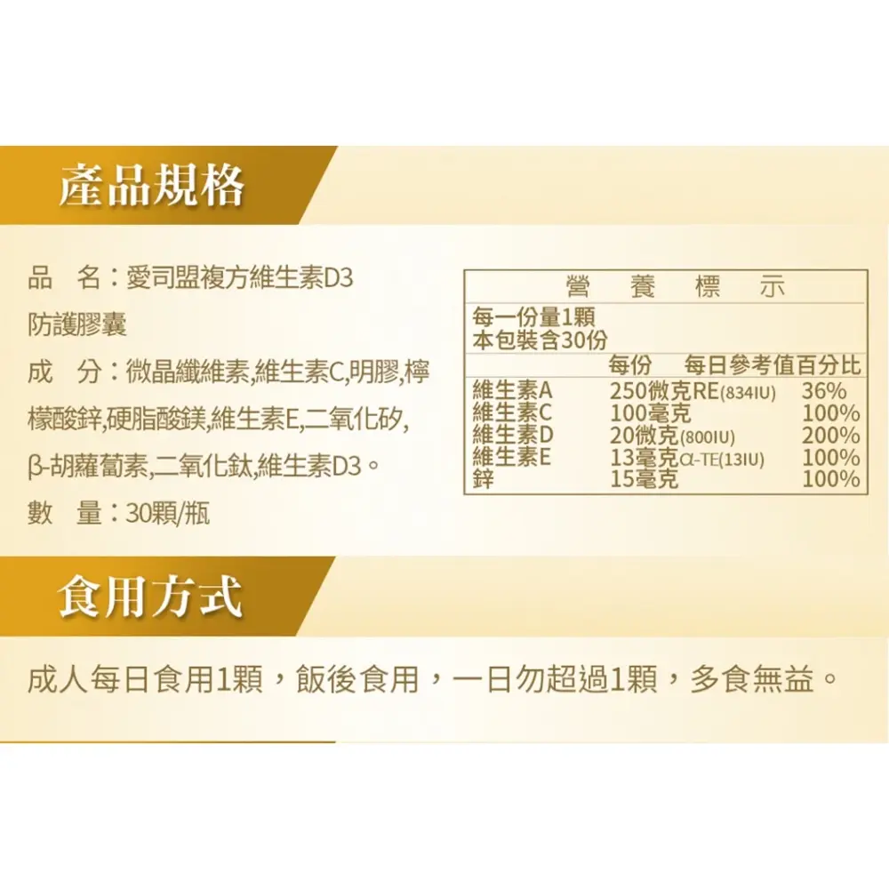 英文名稱: Esmond Complex Vitamin D3 Protection Capsule