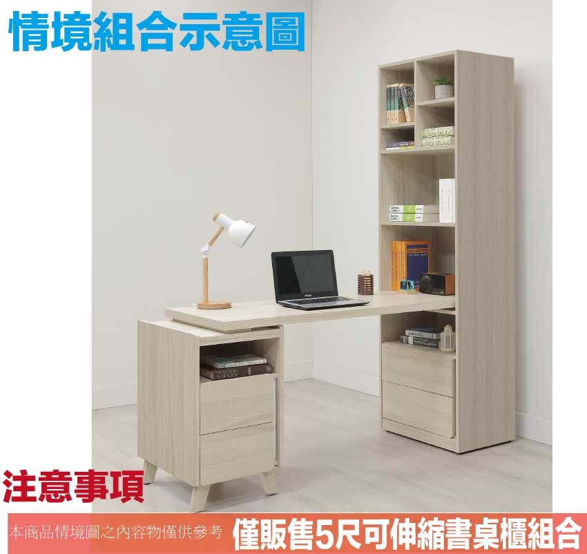 【綠家居】安卡蘭5尺可伸縮四抽書桌&書櫃組合 木紋雙色系+安心材質製造,使用放心+搭配居家更便利,採用防蛀木心板+防潮耐磨底座+仿大理石紋美耐皿材質桌面板+五金滑軌結構等安心材質製造 ,外層採用防潮耐磨噴漆處理搭配採用四抽屜+可伸縮桌面板+開放層格等收納空間設計,全由專人配送到家,專業安心服務,替你省下更多時間!