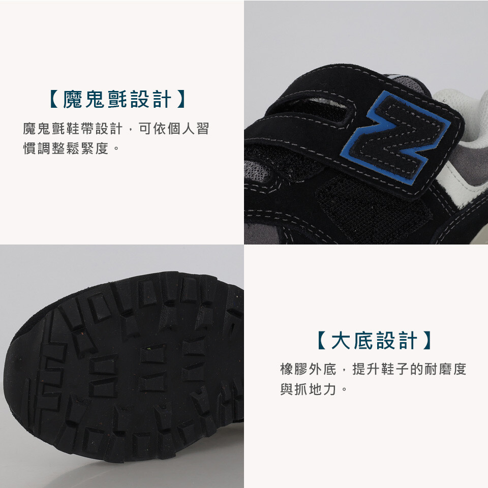 NEWBALANCE 男中童復古慢跑鞋-WIDE-魔鬼氈 寬楦 NB 黑灰藍