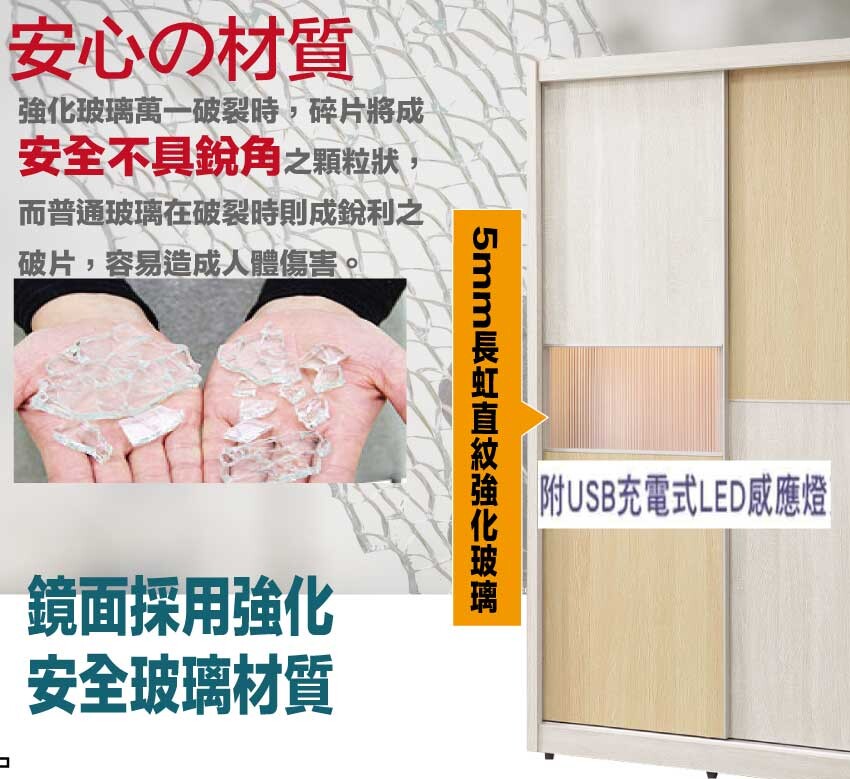 採用防蛀木心板+防潮耐磨底座+五金滑軌結構+強化玻璃門片等安心材質製造