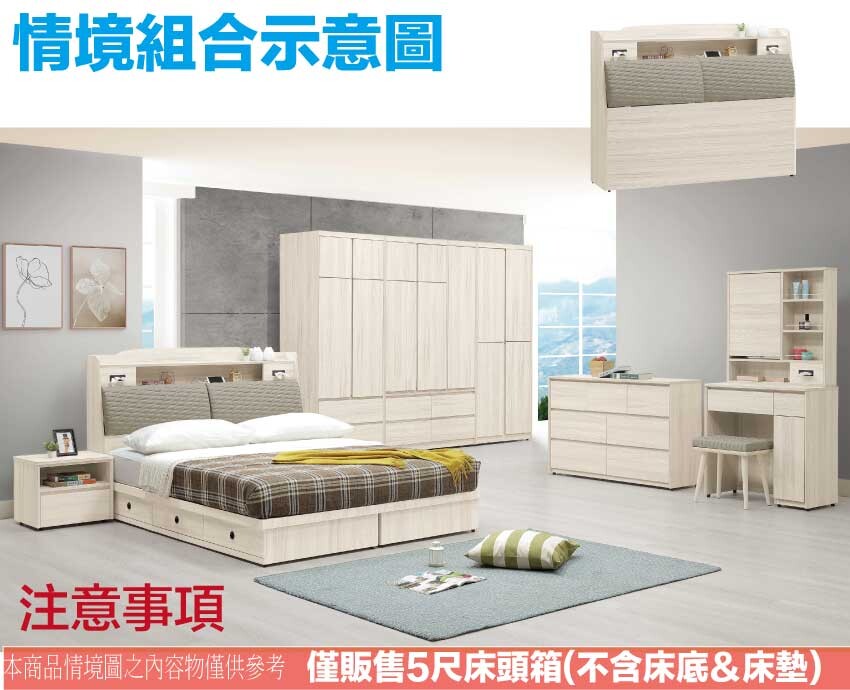 搭配床頭可掀式床枕板+內&外開放收納層格+LED夜燈&USB便利插座設置等收納空間設計