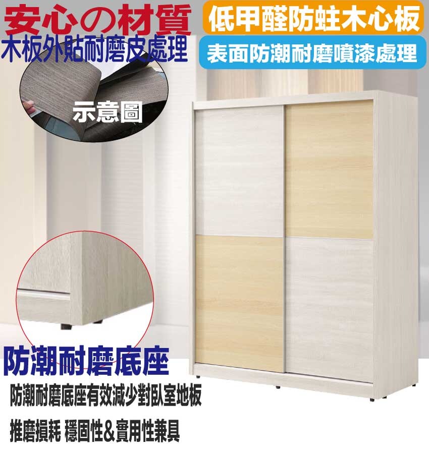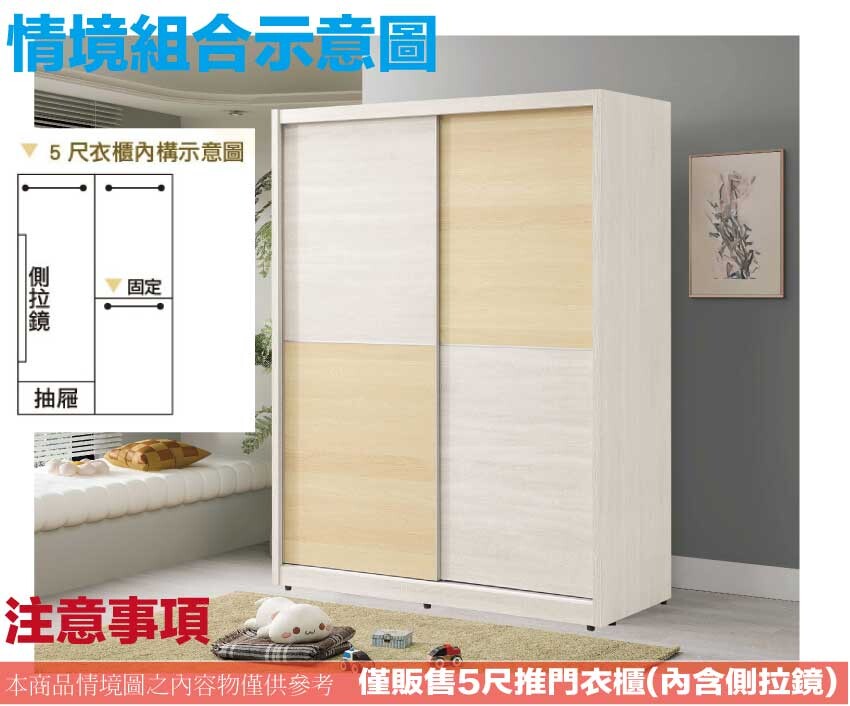 【綠家居】菲可雙色5.1尺推門衣櫃(內含穿衣鏡面) 木紋雙色系+安心材質製造,使用放心+搭配居家更便利,採用防蛀木心板+防潮耐磨底座+五金滑軌結構+強化玻璃鏡面等安心材質製造 ,外層採用防潮耐磨噴漆處理搭配採用推門櫃+吊衣桿+單抽屜+側拉鏡面+內開放多層格等收納空間設計,全由專人配送到家,專業安心服務,替你省下更多時間!