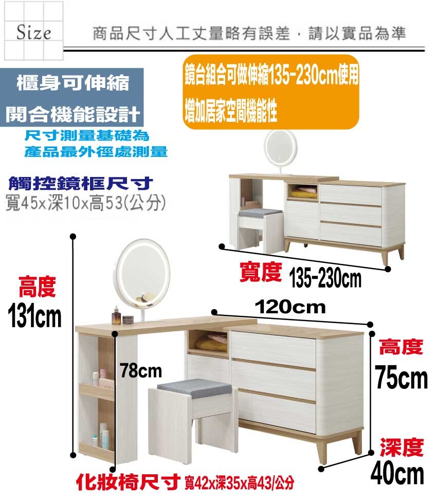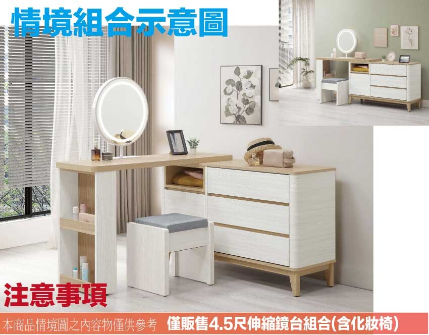 鏡台組合可伸縮135-230cm使用加上櫃身可變化搭配增加便利性