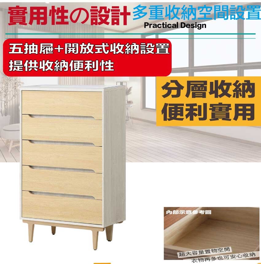 搭配採用五抽屜+開放桌面等收納空間設計