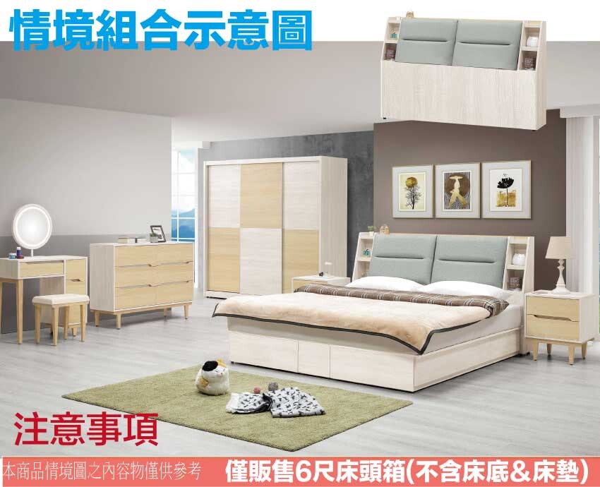 搭配床頭可掀式床枕板+內&外開放層格等收納空間設計
