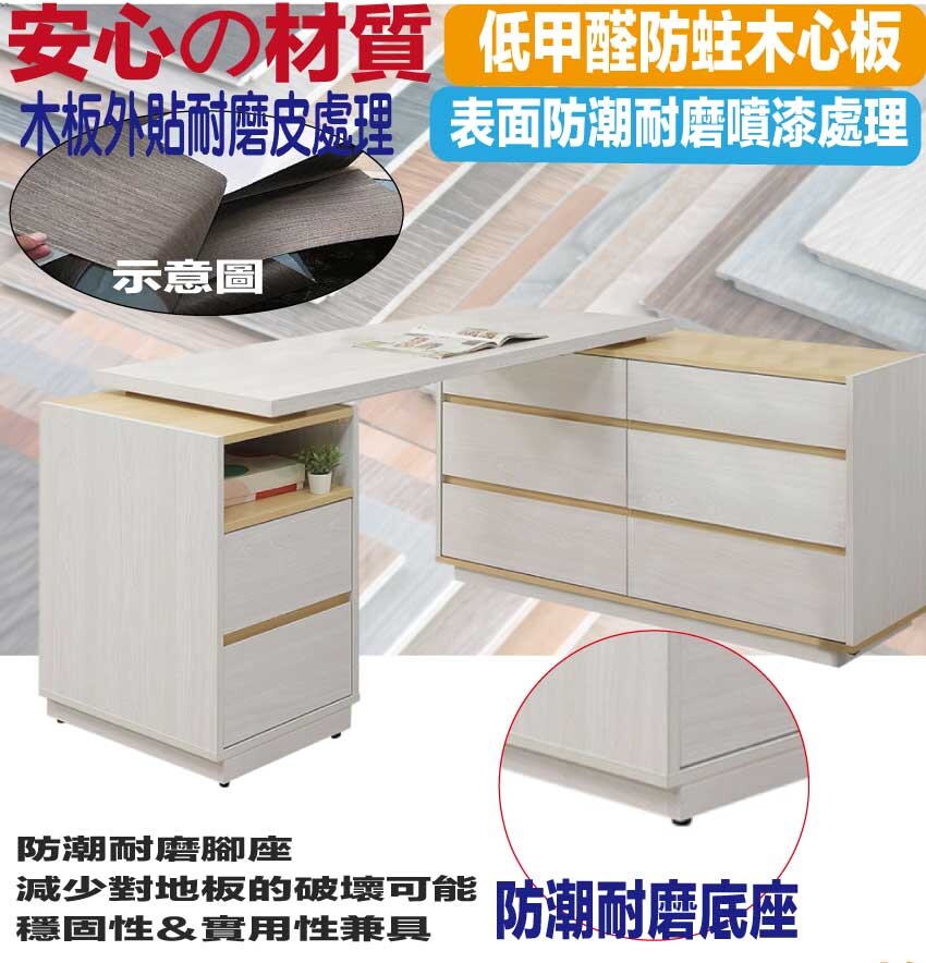 【綠家居】安卡5尺可伸縮變化八抽書桌組合 木紋雙色系+安心材質製造,使用放心+搭配居家更便利,採用防蛀木心板+防潮耐磨底座板+五金滑軌結構等安心材質製造 ,外層採用防潮耐磨噴漆處理搭配採用八抽屜+可伸縮桌面板+開放層格等收納空間設計,全由專人配送到家,專業安心服務,替你省下更多時間!
