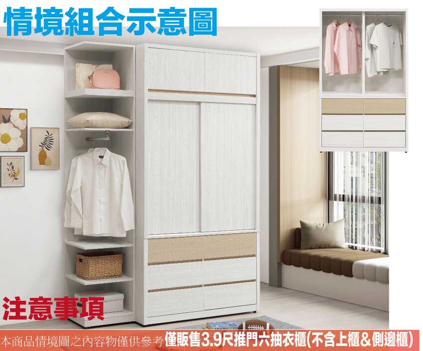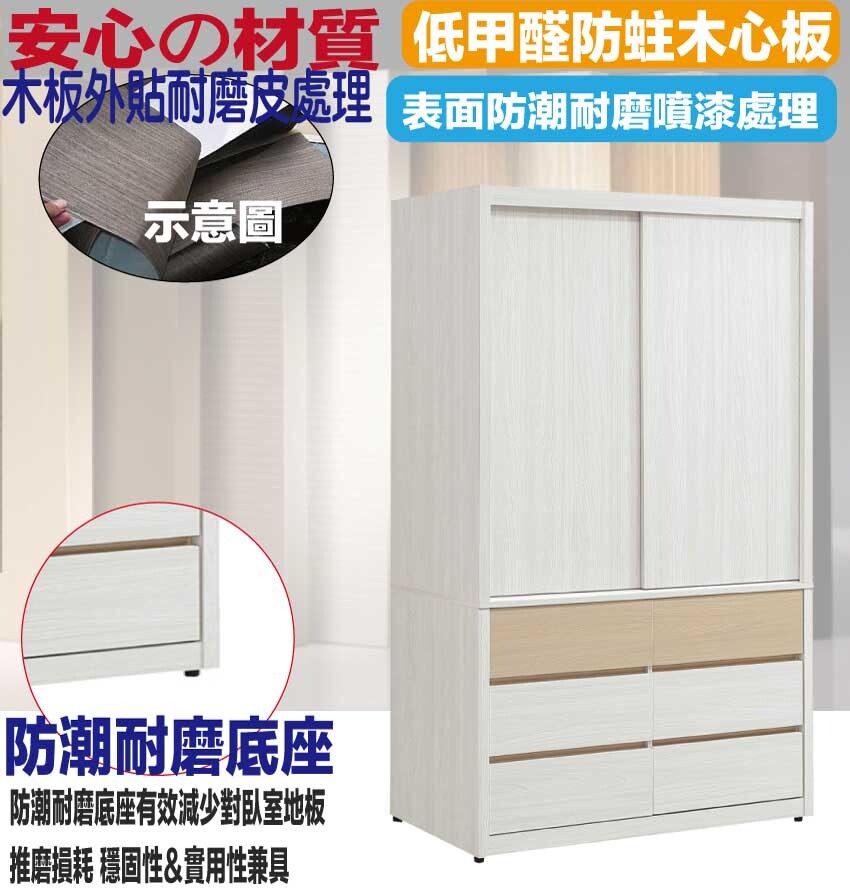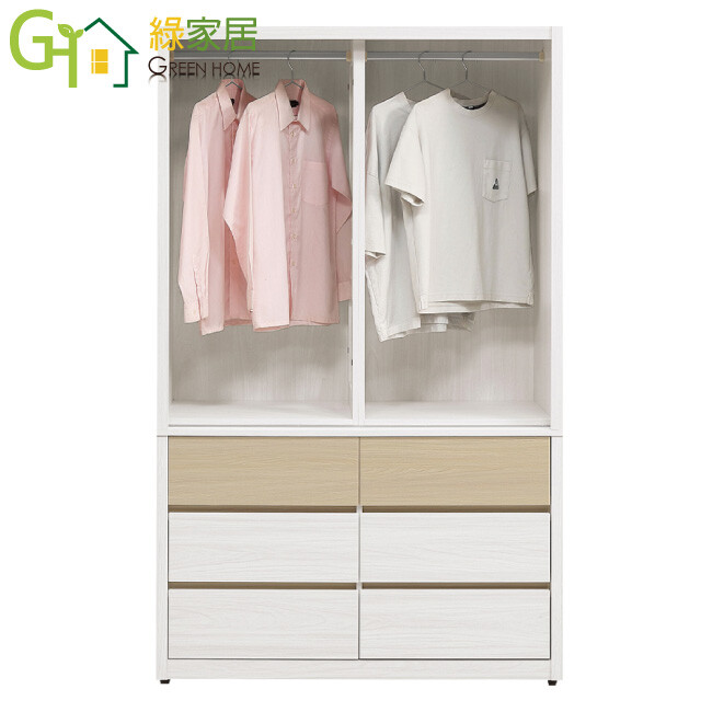 【綠家居】哈伊3.9尺開&推門六抽衣櫃 木紋雙色系+安心材質製造,使用放心+搭配居家更便利,採用防蛀木心板+防潮耐磨底座+五金滑軌結構等安心材質製造 ,外層採用防潮耐磨噴漆處理搭配採用推門櫃+吊衣桿+六抽屜+內開放多層格等收納空間設計,全由專人配送到家,專業安心服務,替你省下更多時間!
