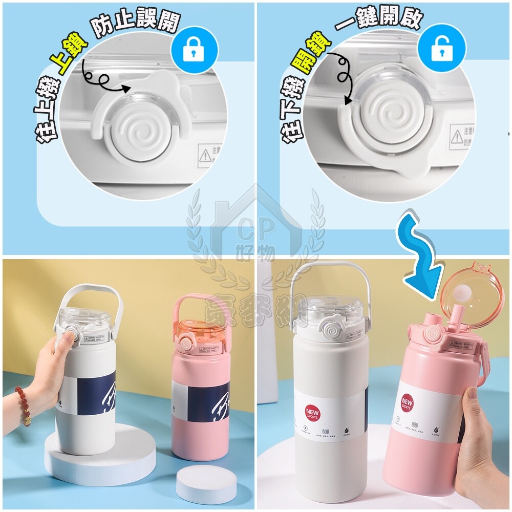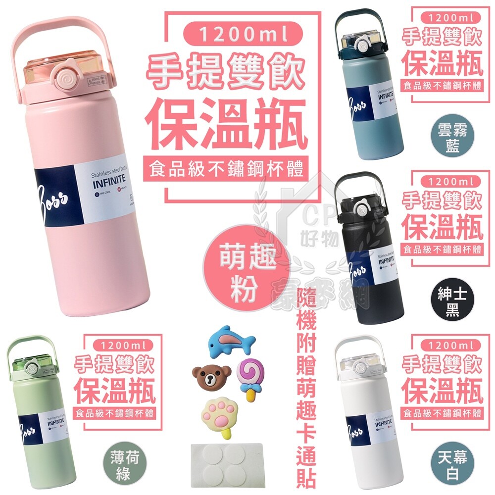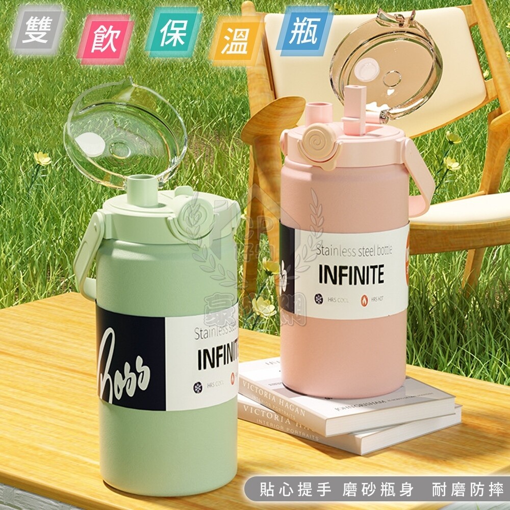 ☆【雙飲保溫瓶】1000ml/1200ml附贈萌趣卡通貼 SUS316不銹鋼雙層真空保溫壺 不鏽鋼保溫杯 可手提附吸管☆