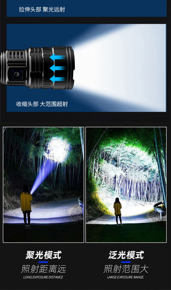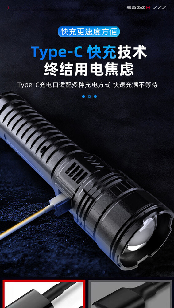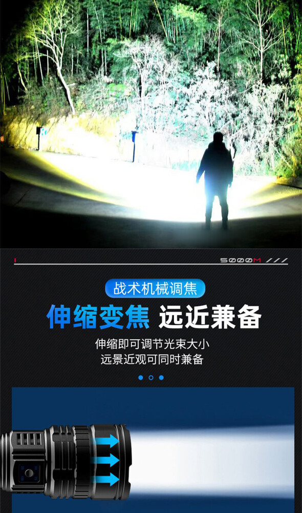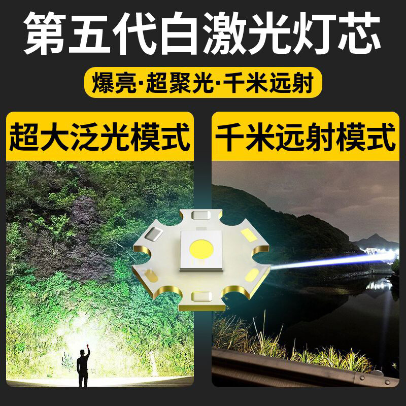 戶外手電筒 強光鐳射炮 大功率 長續航 多功能 充電cob工作燈 超亮白激光 內置大容量锂電 z