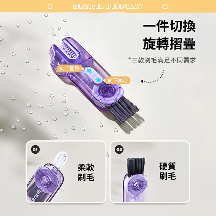➣360度旋轉切換刷頭與卡扣設計,清潔更便利