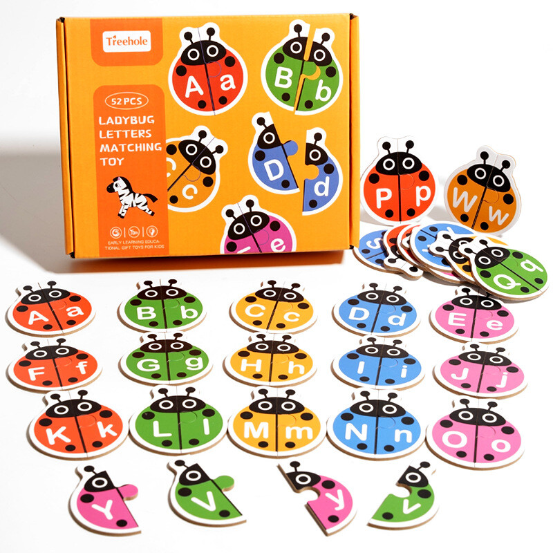 可愛瓢蟲字母配對拼圖 大小寫英文配對卡 英文單字學習 abcABC配對拼圖卡 英文拼圖