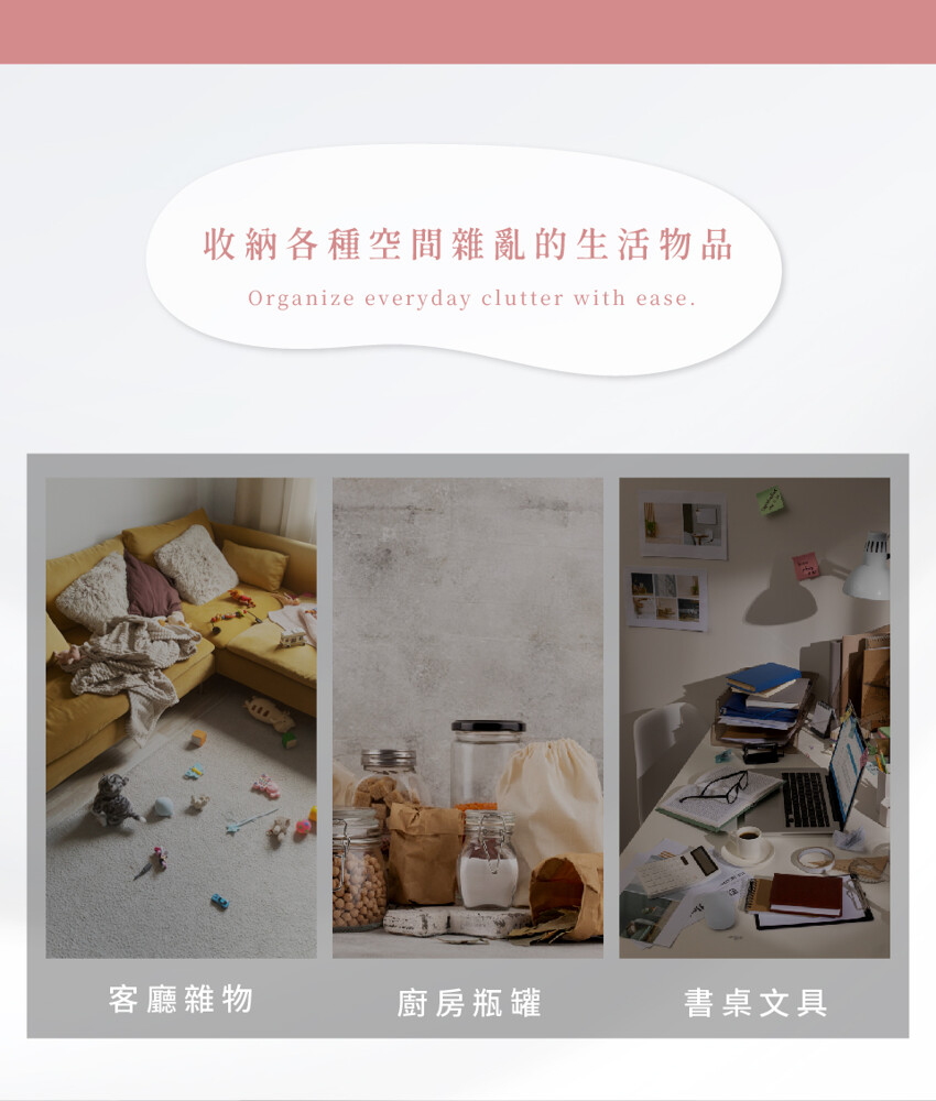 從廚房用品、化妝瓶罐、辦公文具,還是浴室備品,一車搞定,讓你的收納生活輕鬆搞定。