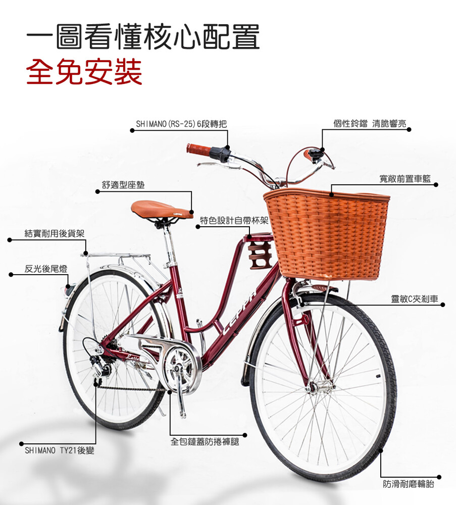 全套日本SHIMANO 6段前後變速配置 時尚騎乘無負擔
