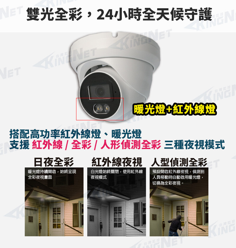 帝網 KingNet 400萬 雙光源 日夜全彩 IP POE 戶外防水半球網路攝影機 IPC41