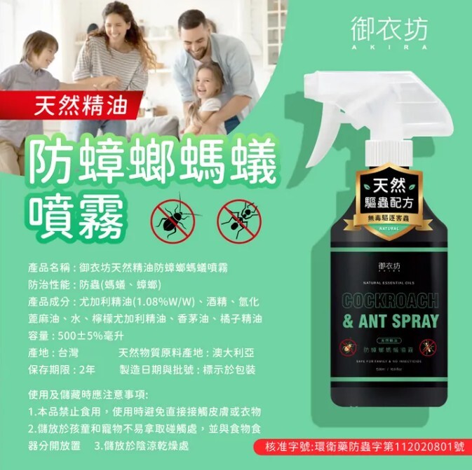 產品名稱:御衣坊天然精油防蟑螂媽蟻噴霧