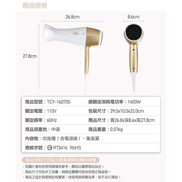 ❁內 容 物:吹風機本體(含電源線)、集風罩