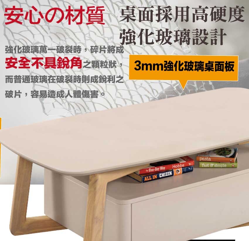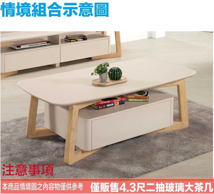 【綠家居】琳克雙色4.3尺玻璃二抽大茶几 木紋雙色系+安心材質製造,使用放心+搭配居家更便利,採用防潮MDF板+防刮實木腳座+五金滑軌結構+3mm強化玻璃桌面板等安心材質製造 ,外層採用防潮耐磨噴漆處理搭配採用雙面開合共二抽屜+開放層格等收納空間設計,全由專人配送到家,專業安心服務,替你省下更多時間!