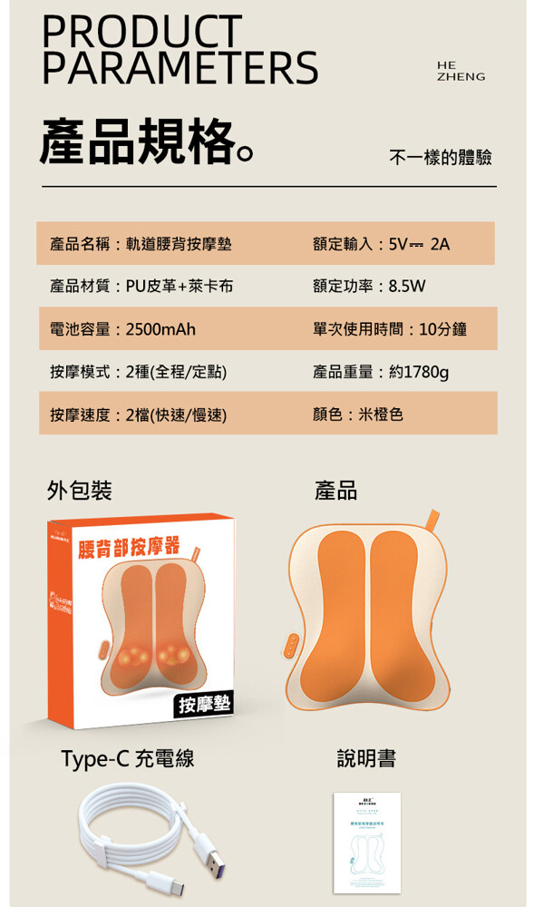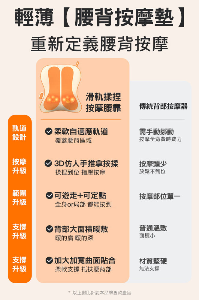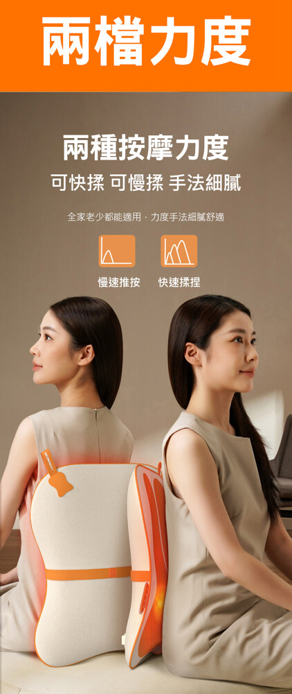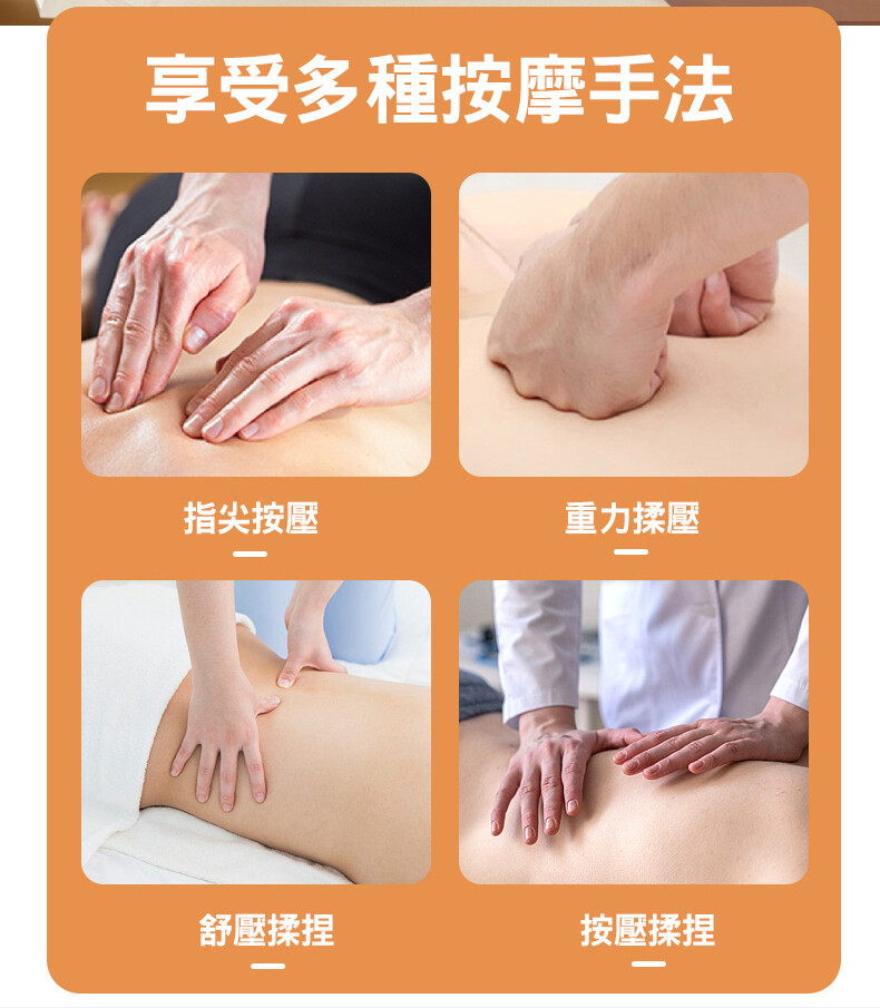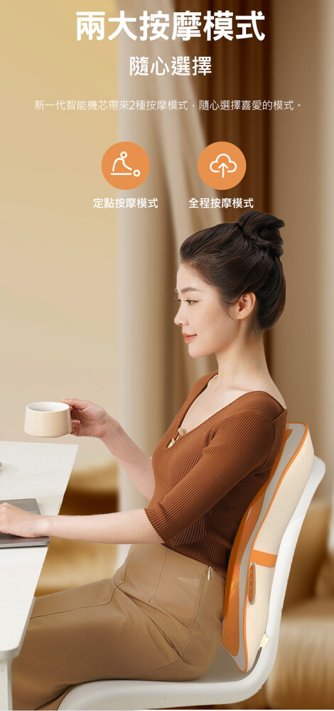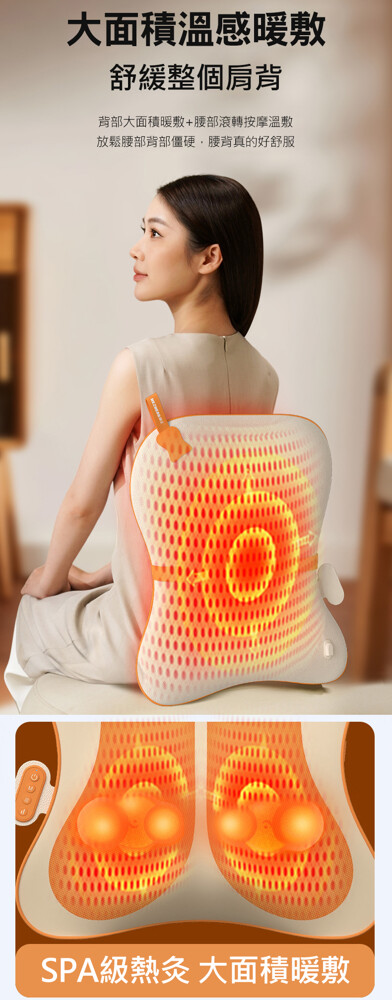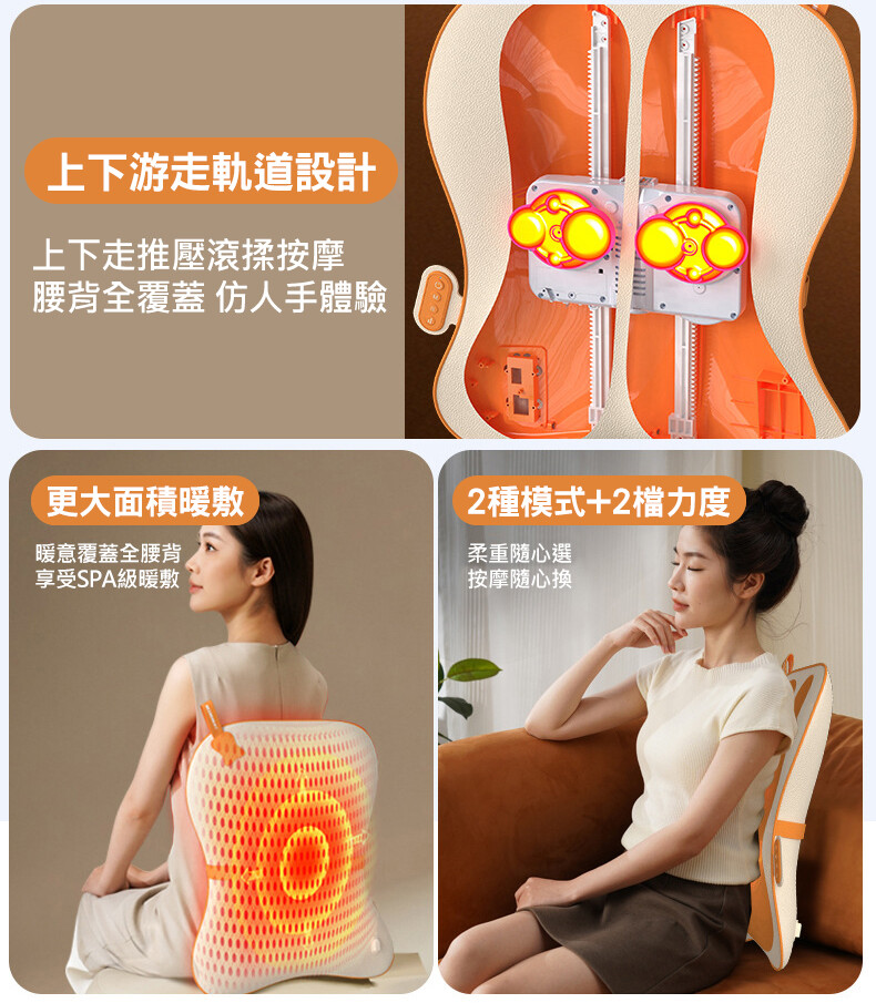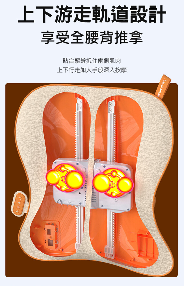 1. 採用上下游走按摩的原理,充分按到腰部與背部,實現腰背一體化的按摩,仿人手的按摩手法,力度更大範圍更廣。