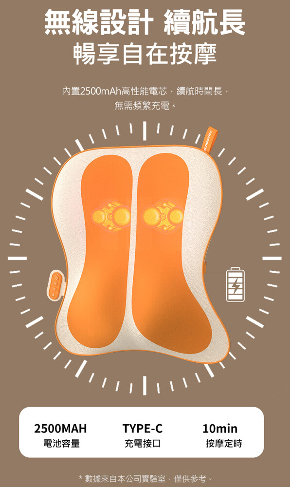 8. 無線設計,續航長,享受自在按摩,2500mAh高性能電芯,無需頻繁充電。
