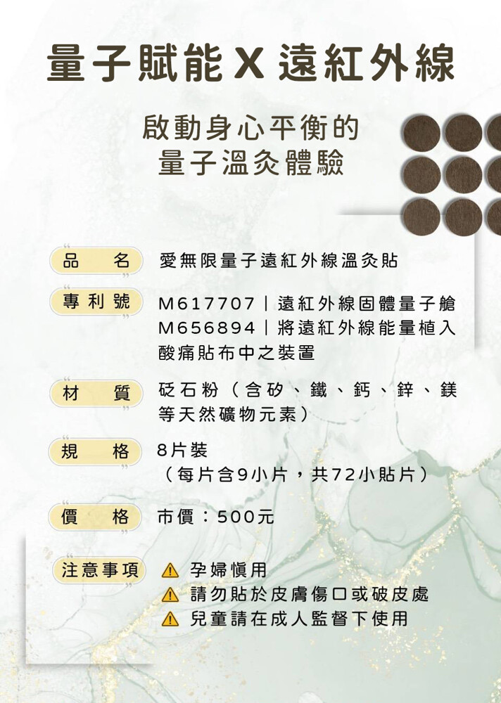 ✦專利字號M656894:將遠紅外線能量植入酸痛貼布中之裝置