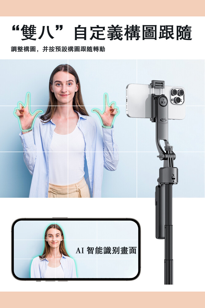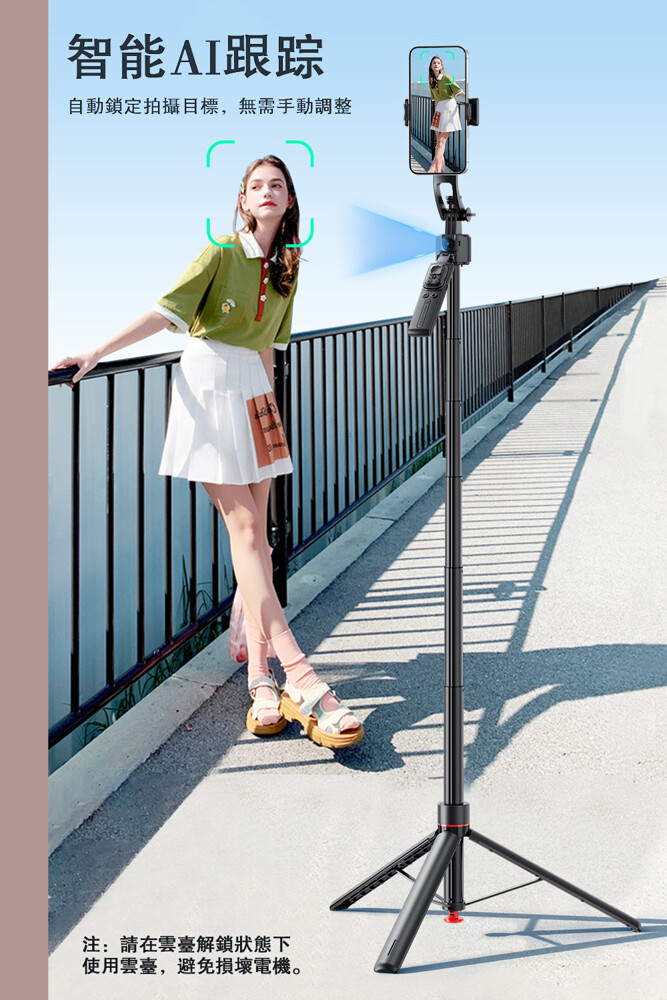 專為自媒體創作者打造的 AI 智慧追蹤腳架,支援360°自動旋轉與秒速展開,讓你無論在家拍片、旅拍出遊、街頭創作,都能享有如同專業攝影師般的穩定拍攝體驗。