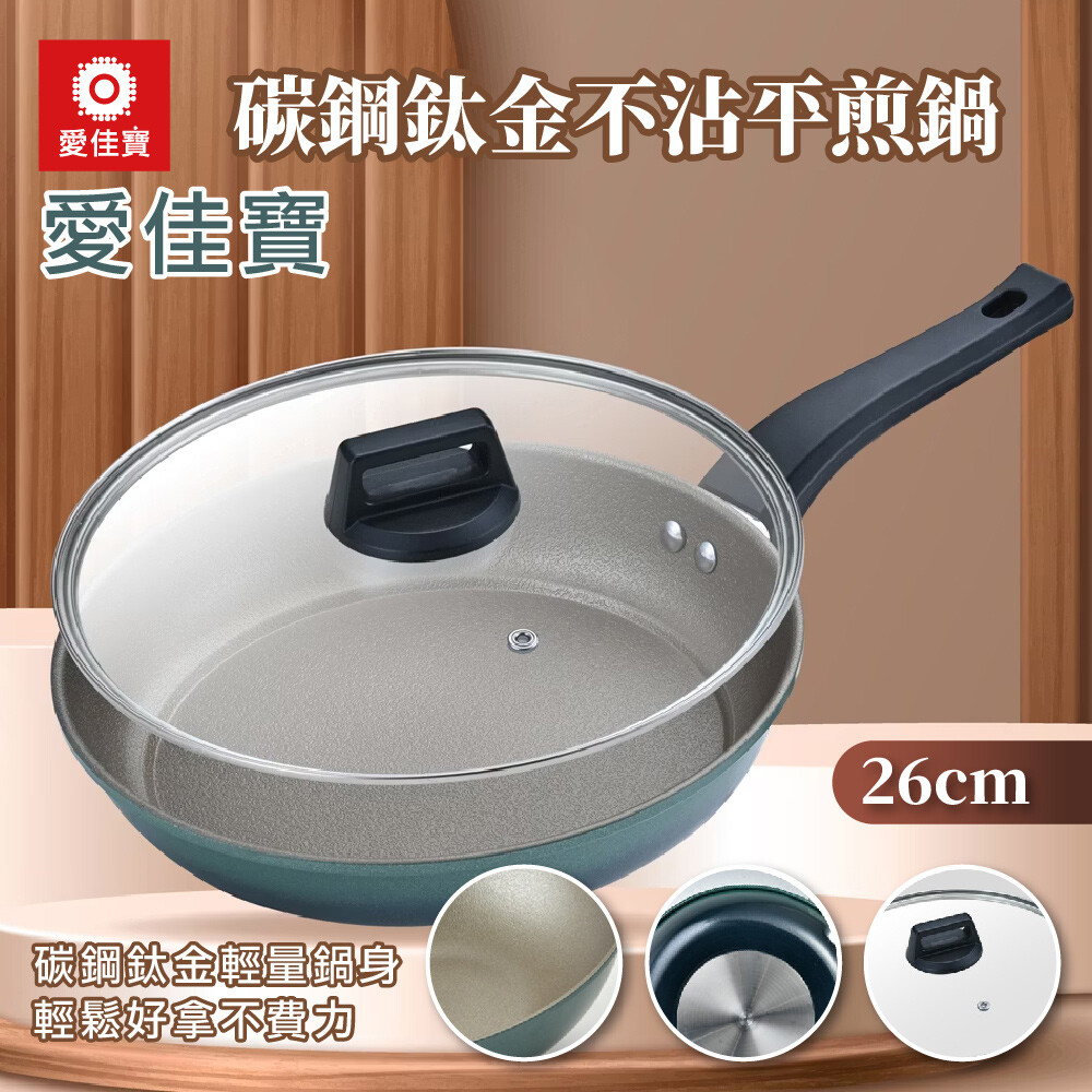 【愛佳寶】碳鋼鈦金不沾平煎鍋26cm